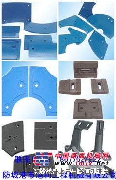 防城港市港利工程机械有限公司专业生产工程机械配件、各种进口国产混凝土搅拌机、混凝土搅拌站(楼)叶片、衬板、搅拌臂、沥青拌和机、摊铺机、厂拌机、进口国产混凝土成型砌块砖机模具以及公路、铁路、冶金、矿山、电力、化工业、粉碎业等配套生产耐磨合金配件,我本着以“的价格、优异的质量、至上的服务、A级的信誉”的宗旨,以ISO9002、ISO9001认证、3C认证、ISO14001认证质量体系为后盾,荣幸地向贵公司提供合金耐磨产品。